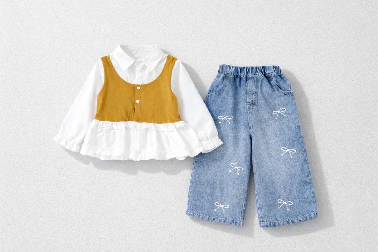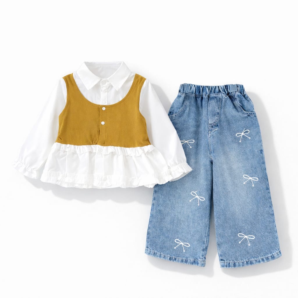 Set Baju kameja jeans Denim Budak  (1–8 Tahun)